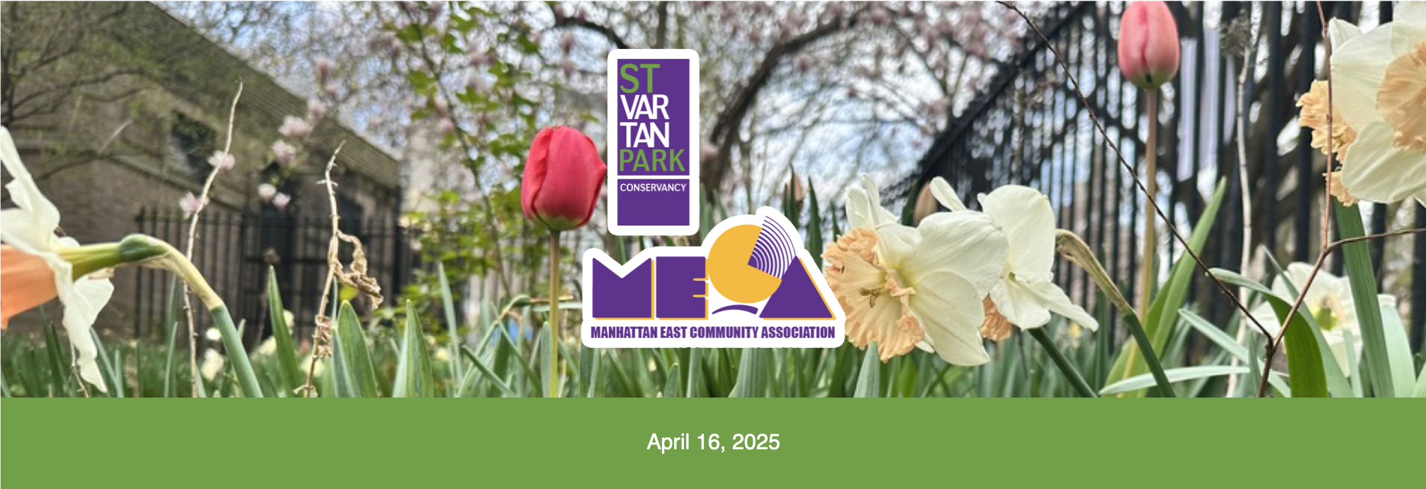 Subscribe below to the complimentary St. Vartan Park Conservancy | Manhattan East Community Association community newsletter. Access the first 104 issues of the newsletter on this page.