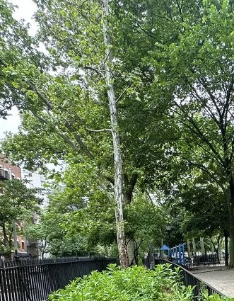 27 Trees: 21 London Plane, 2 American Sycamore, 1 Callery Pear, 1 Golden Rain, 1 Japanese Zelkova, 1 Littleleaf Linden